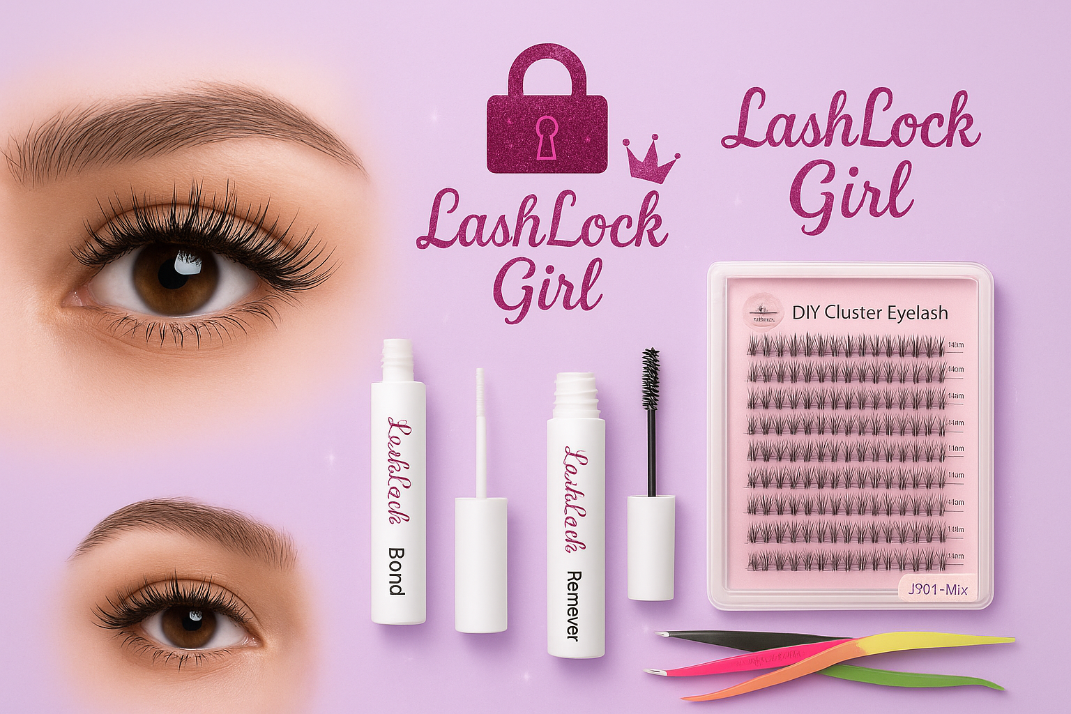 Lash lock Glue, Seal,Remover, Lash tray and Tweezers